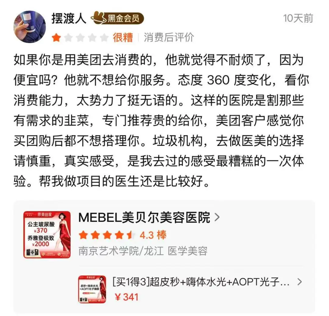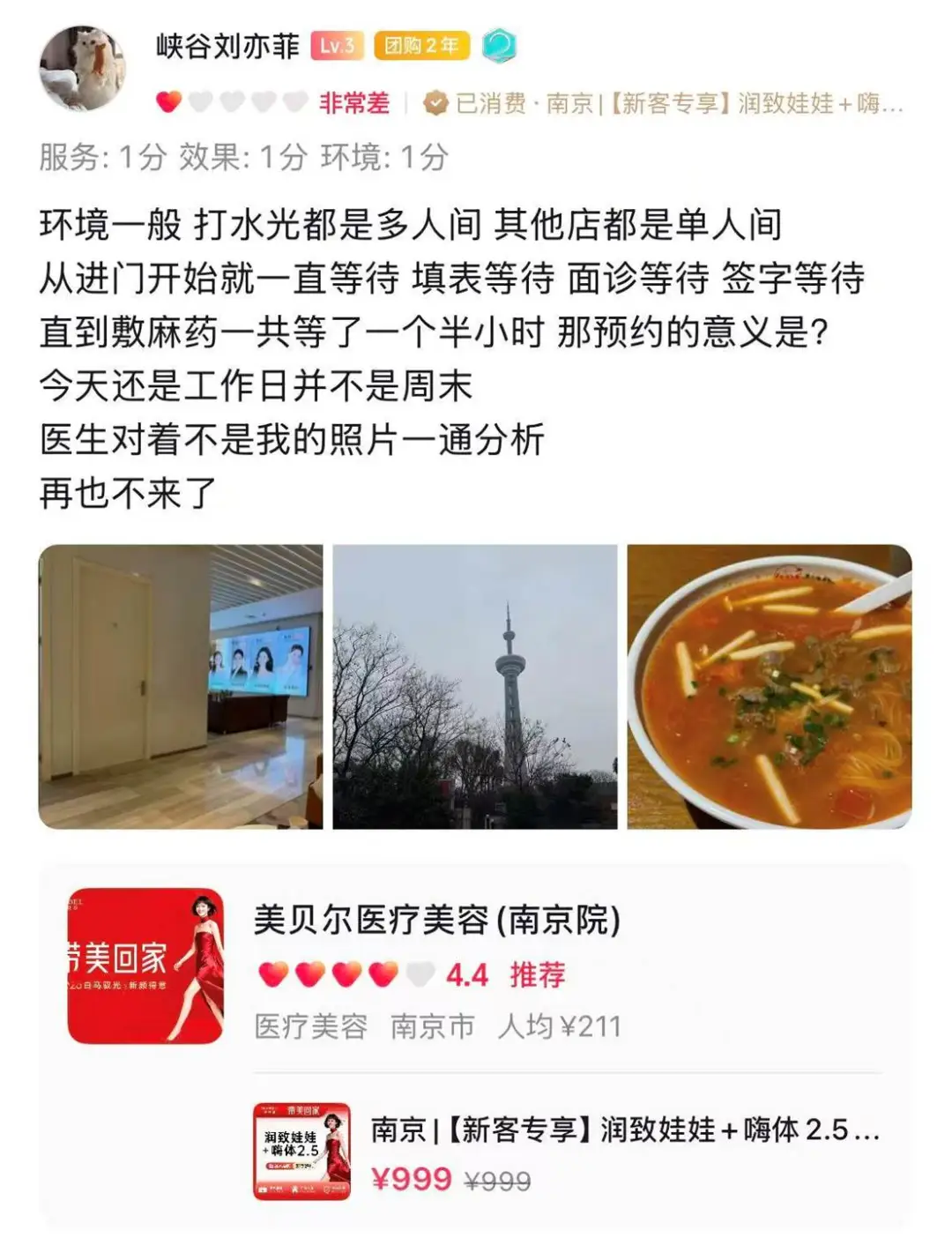 一条条差评摆着,让南京美贝尔的医美生意经失去了温度。