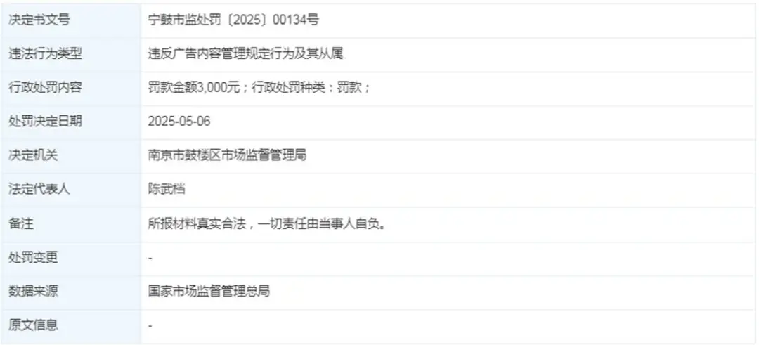 本以为这样的连续处罚能让南京美贝尔有所收敛,可令人失望的是,到了2025年5月6日,它又一次因违反广告内容管理规定行为被相关部门查处。