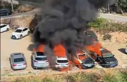 10月5日,第四批全国乡村旅游重点村——宁德市东壁村附近,一辆阿维塔06突然起火,引发周围7辆车着火,其中不乏奥迪、宝马等豪车品牌。据悉,这几辆车最终遭遇不同程度的损坏。