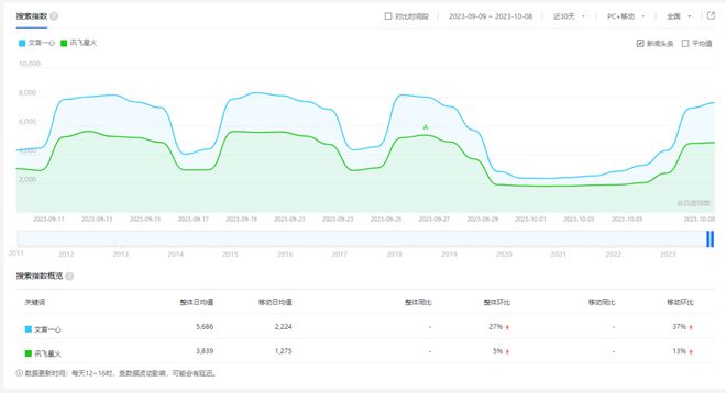 从百度搜索指数来看,讯飞星火的影响力已不敌文心一言。截至花朵财经撰稿,文心一言和讯飞星火的搜索指数整体日均值分别为5686和3839,文心一言显著领先于讯飞星火。