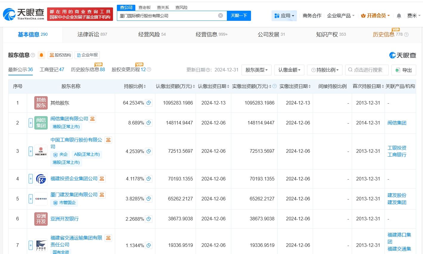 天眼查App显示,近日,厦门国际银行股份有限公司发生工商变更,注册资本由约170.5亿人民币增至约175.7亿人民币。