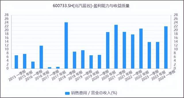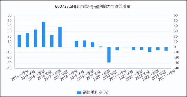 数据显示:自2020年开始,北汽蓝谷的销售毛利率一直为负数,北汽一直在干着卖一辆亏一辆的买卖。