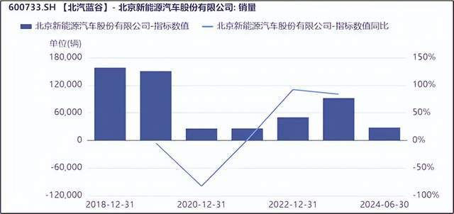 2024年上半年,北汽蓝谷新能源汽车累计销量为28011辆,同比下降约20.40%。横向对比来看,蔚来(NIO)(交付21209辆)、理想(LI)(交付47774量)和极氪(ZK)(交付20106量)今年6月一个月的交付量就已经超2万。北汽蓝谷,已被狠狠地拍在沙滩上。
