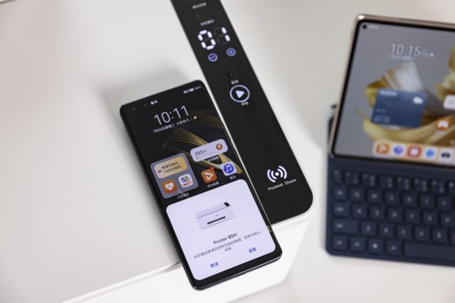 而在华为PixLab V1上,针对当下混合办公时代下的办公场景,这些难题都迎刃而解。我们只要通过手机/平板的超级终端界面一拉即合打印机,即可出现一个统一的打印入口,开启超级打印模式,所有用户都可以随时随地,想连就连,而且将图片/WPS文档//备忘录/浏览器页面等常见内容的打印入口归一,不再需要寻找手机不同应用各不相同的打印入口,只需要点击屏幕上的悬浮球,就可以快速发起打印,让打印从此就像发微信一样简单便捷,无论老人还是小孩都可以轻松完成,真正让打印操作实现“零门槛”,而稳定高效的使用体验可以让我们的生产力进一步提升。