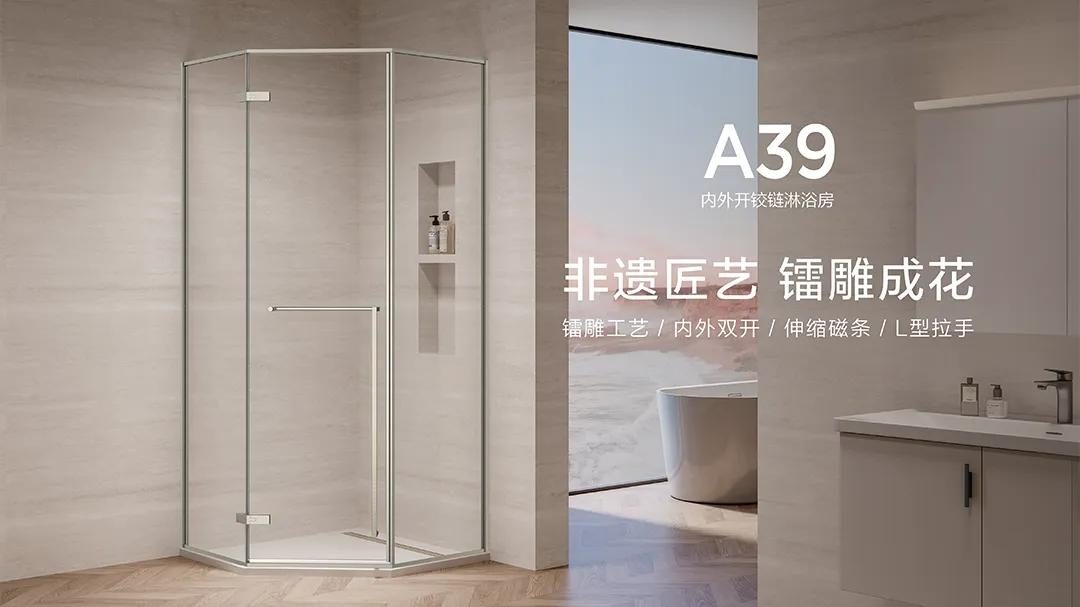 以九牧A62S雅典娜系列淋浴房为例,针对日常使用中的真实痛点就给出了系统性解决方案。它搭载的零重力缓冲技术,解决了传统推拉门“笨重”的难题,轻推即动、缓闭无声,让老人和孩子也能轻松驾驭;针对用户最头疼的清洁问题,玻璃经过易洁处理,水珠滑落不挂垢,抗污能力大幅提升;安全层面同样没有妥协,3C认证的钢化玻璃加贴优质防爆膜,为每一次沐浴提供了坚实的保障。又比如防水上,九牧另一款A39织影淋浴房,采用伸缩式金属磁条和精密铰链结构,再加上三片式下挡水设计,实现360°立体防水,让每一滴水花都无处可逃。