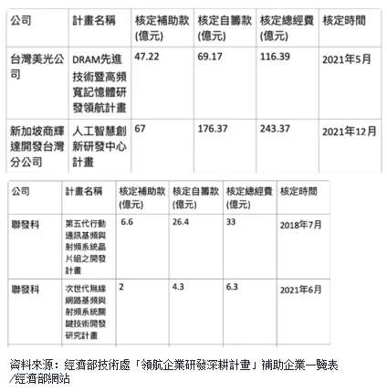 还要看到的是,台版法案适用对象不分内外,但对台湾来说却似内外严重“有别”。徐然进一步指出,从经济部技术处推动的“领航企业研发深耕计划”来看,外商企业如Micron、Nvidia获得大量补助,而台湾本地的IC设计龙头联发科的补助金额相比之下却天差地别(如下图)。