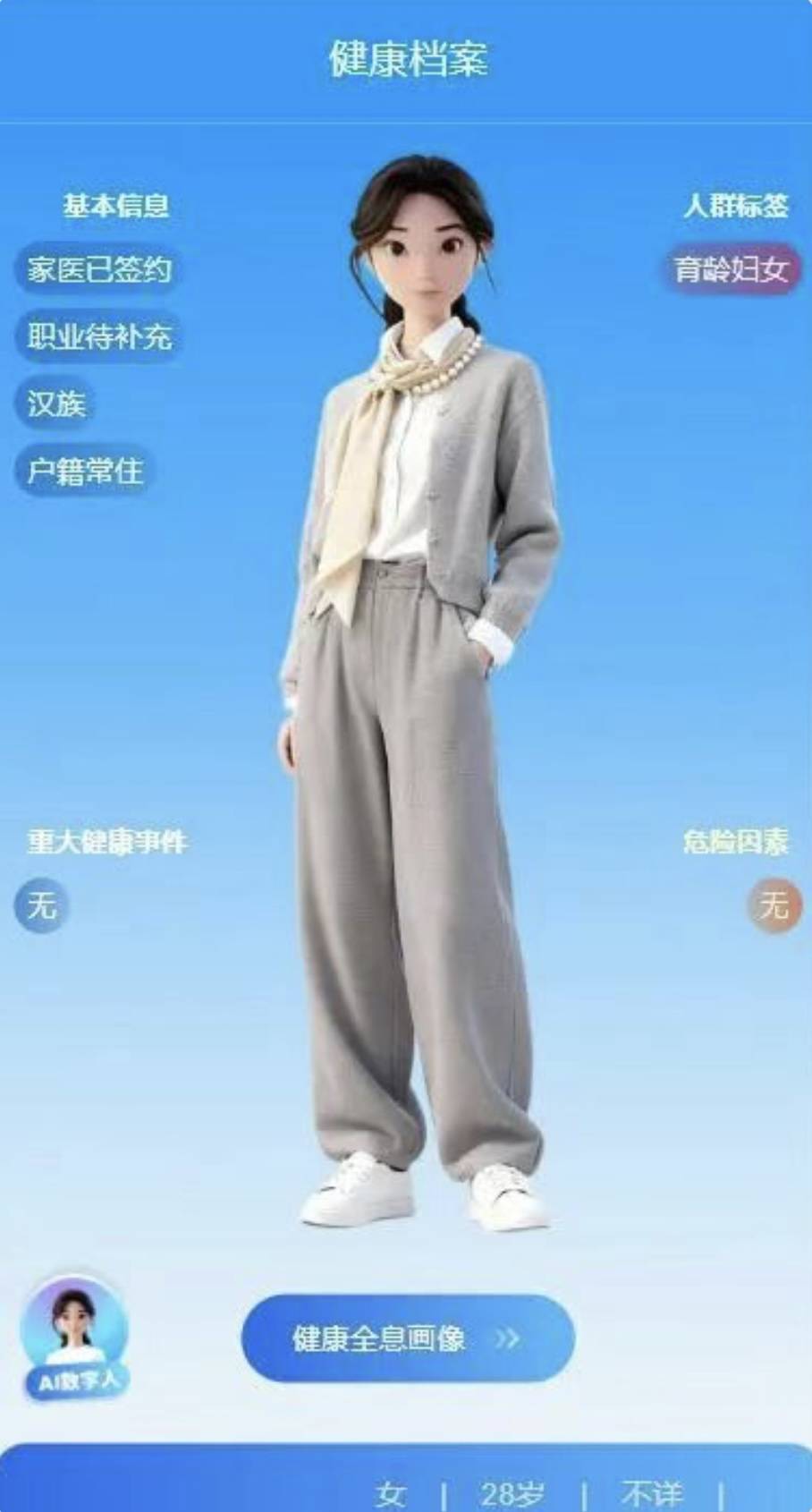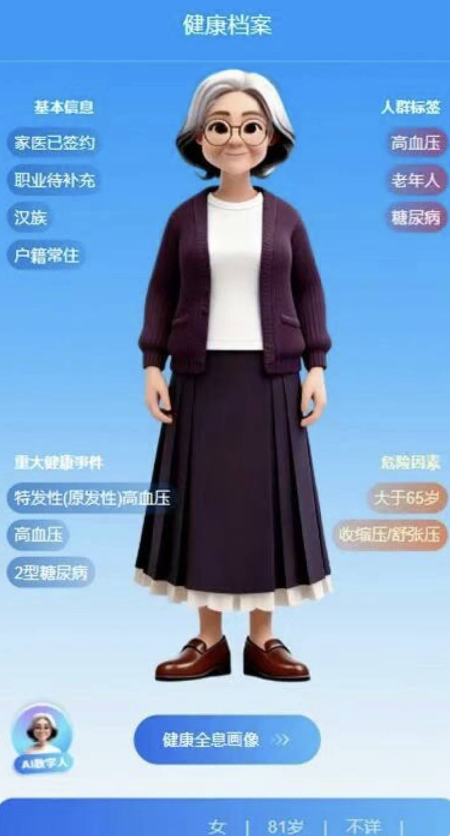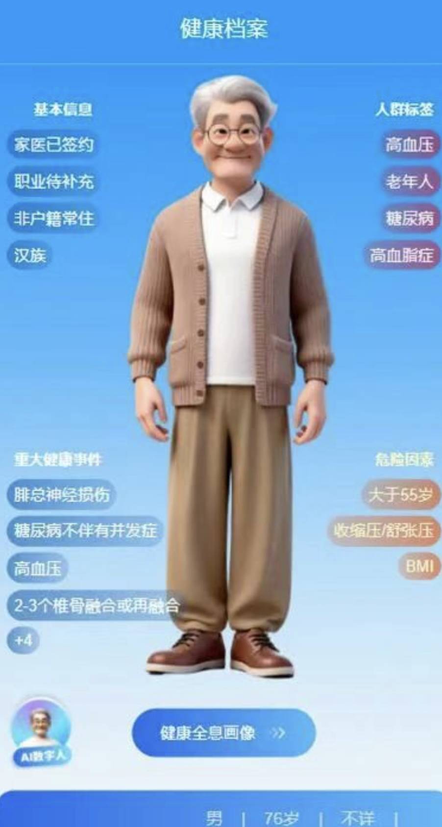 对于那些难以理解的诊疗或健康问题,该系统通过引入基于人工智能和医学大模型定制的专属“AI数字人”,帮助居民进行全方位辅助分析、解读检查报告、查询家庭医生签约信息以及慢病管理信息等,并针对用药指导、饮食搭配、生活习惯、运动康复等方面给出辅助建议,方便居民更好地管理自己的健康状况。