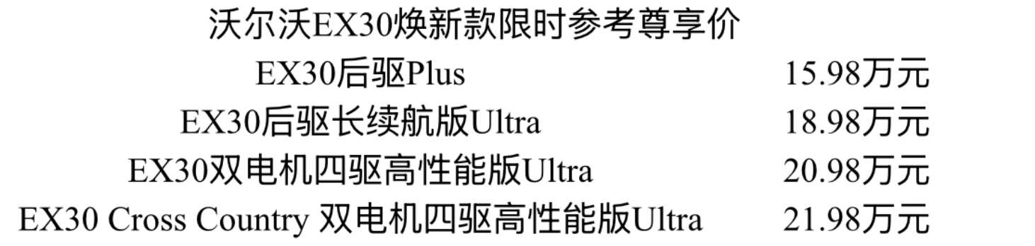 15.98万元起,豪华纯电SUV沃尔沃EX30焕新款上市观点