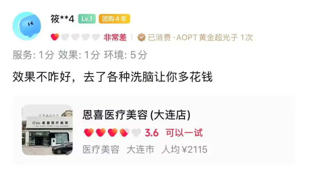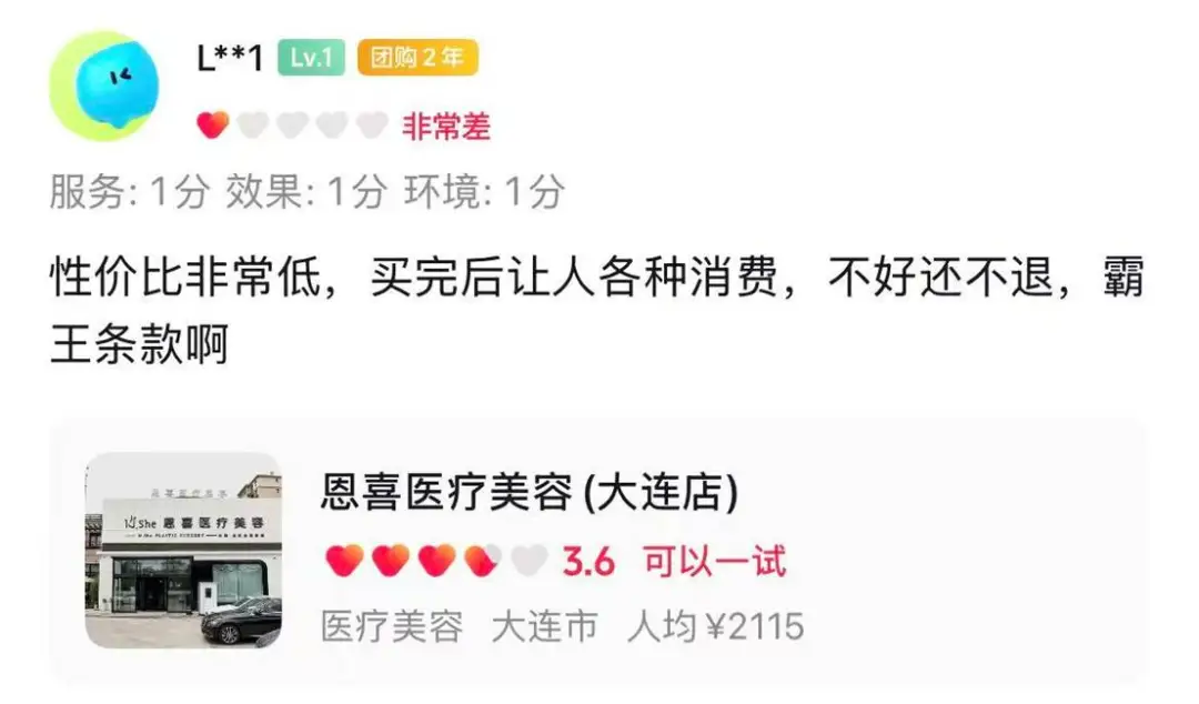 别以为小美运气差,打卡评论区,关于大连恩喜医美负面声量高到能开专场。