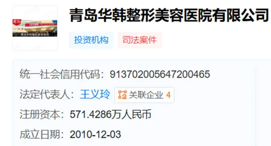 2010年12月3日,青岛华韩整形美容医院有限公司成立。