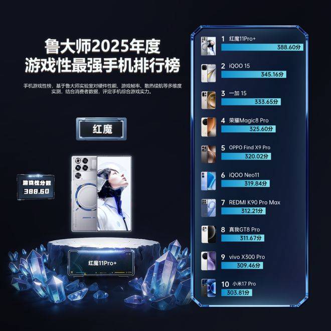 红魔 11Pro+ 同时摘得“2025年度游戏性最强手机”殊荣。性能只是起点,真正的“游戏旗舰”更看重功能体系:从丰富模式到外设生态,从沉浸体验到满帧稳定,红魔用一整套电竞向产品逻辑,把手游体验做成专业级装备。