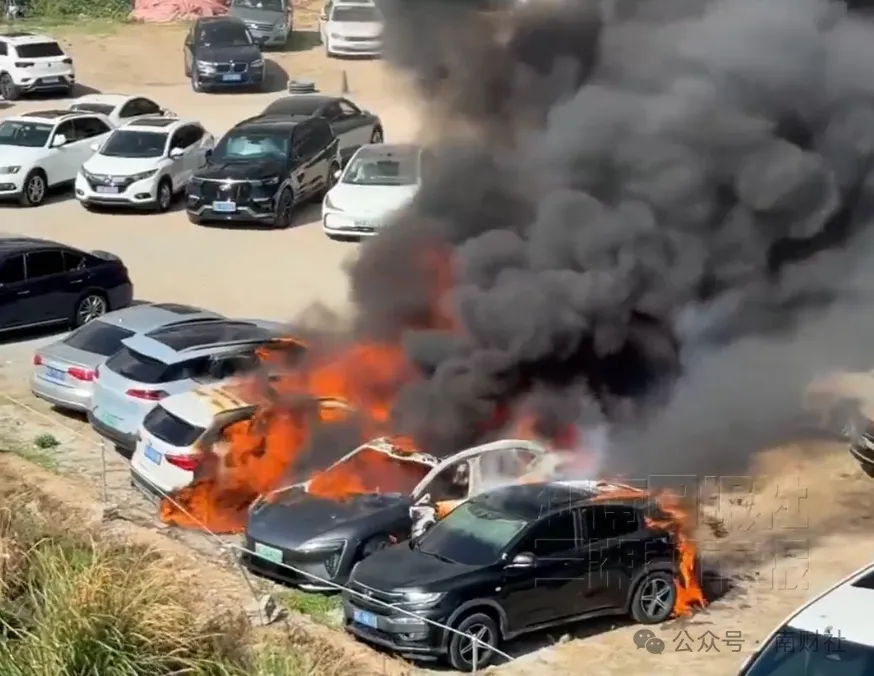 10月5日,一辆阿维塔06在福建省宁德市三沙镇东壁村突发起火事故,据视频显示,火势迅速蔓延,导致周围停靠的包括宝马、奥迪在内的七辆车也被烧毁。