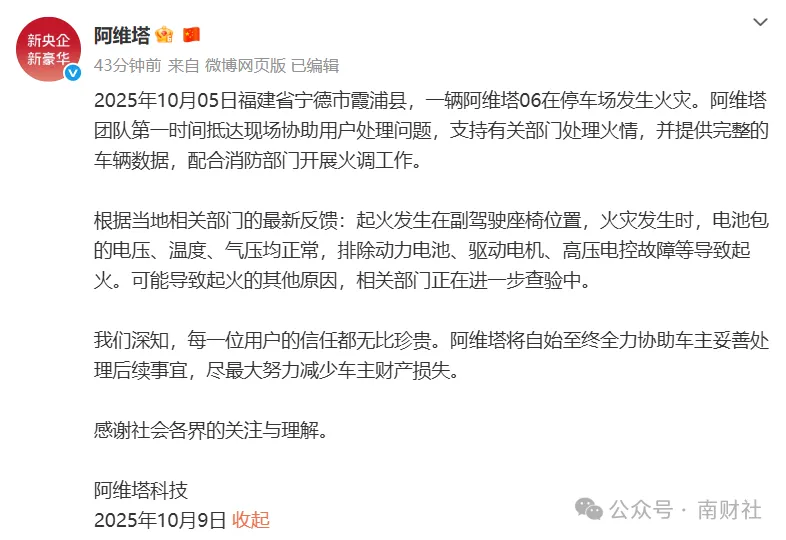 事实上,今年以来,这已是阿维塔第三次出现燃烧事故了。