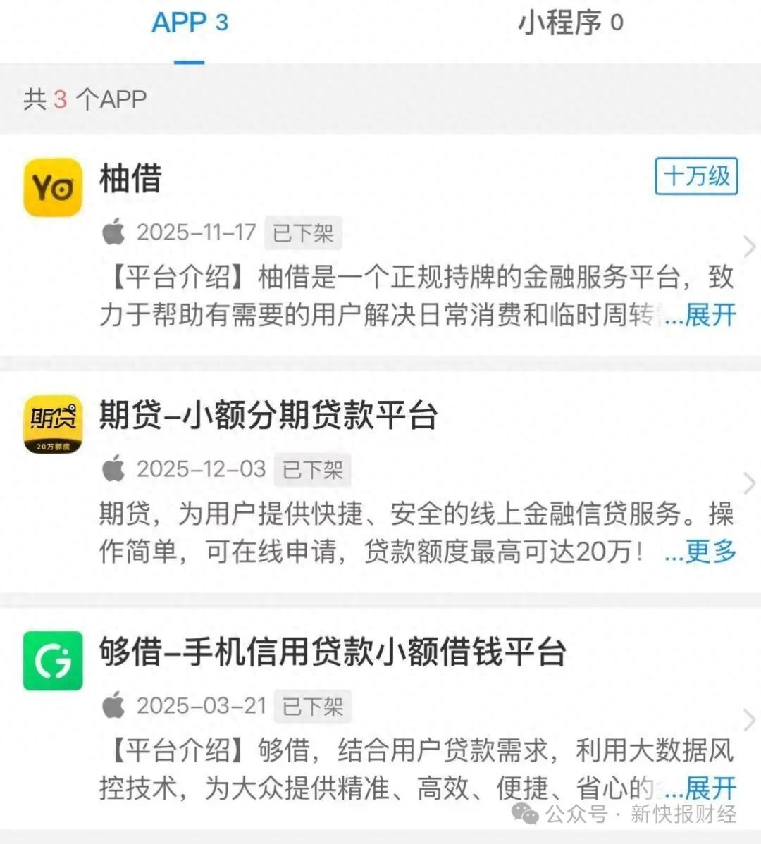 据企查查平台信息,重庆两江新区通融小额贷款有限公司(以下简称“通融小贷”)旗下关联贷超产品期贷、柚借、够借均已下架,其中期贷于2025年底下架。新快报财经在相关上架渠道搜索上述贷超产品,未能查询到产品信息。