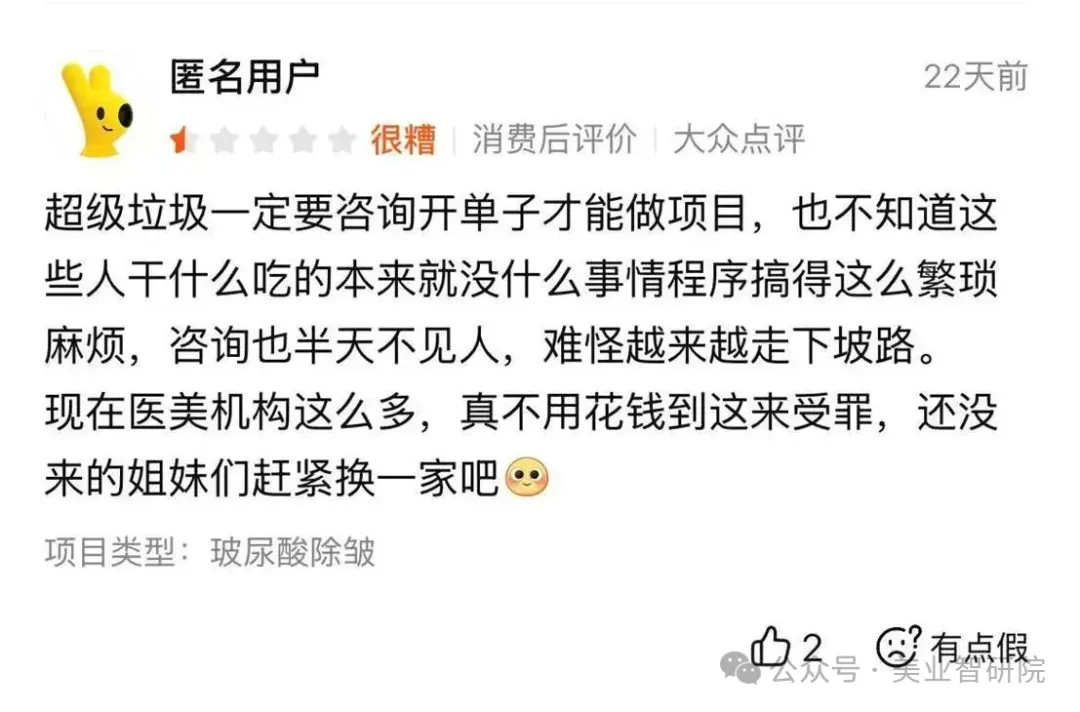 在医美竞争白热化的当下,这种把消费者耐心当耗材的服务态度,正是它口碑下滑、客流萎缩的根源。