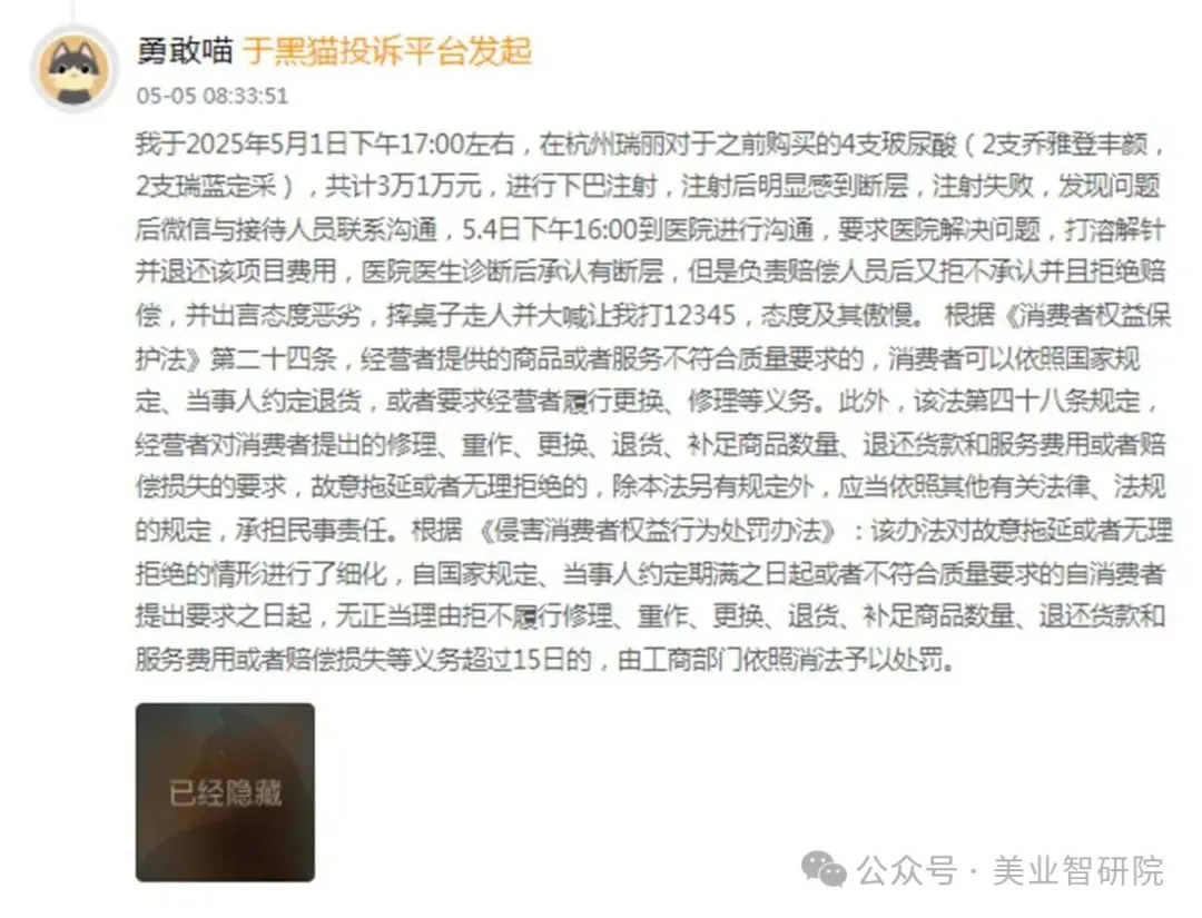 在追求美的行业里,杭州瑞丽医美本应是美的缔造者,可如今却成了信任危机的源头。