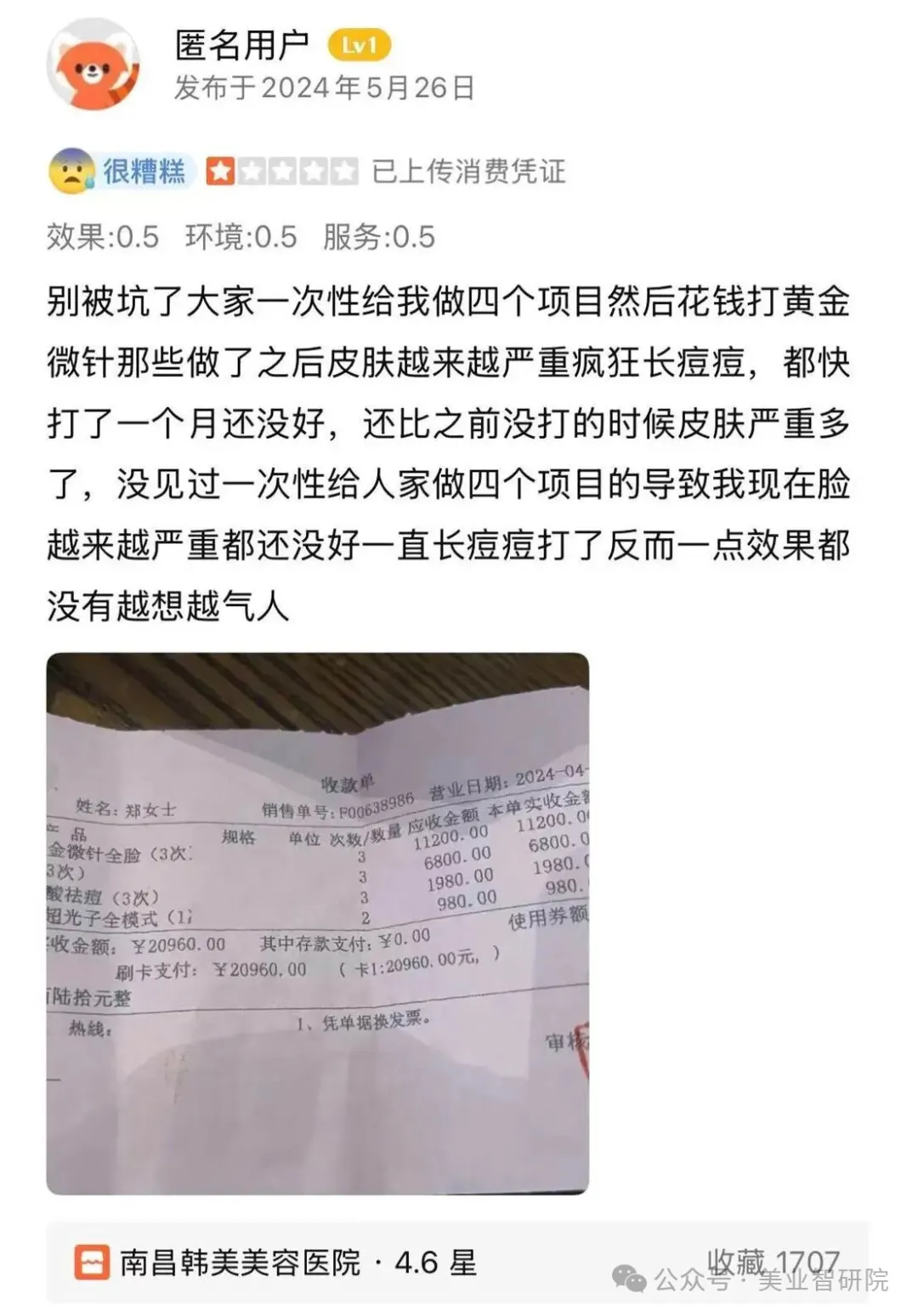 大量差评显示,南昌韩美在营销包装与真实服务之间落差巨大,安全感和信任度双双破产,被消费者集体打上“避雷”标签。