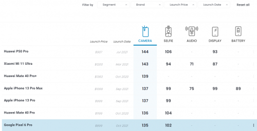 135分排名第七!DXOMARK公布谷歌Pixel 6 Pro相机评分:重回顶级水准快讯