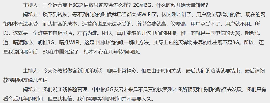 连专家都觉得 3G 是个骗钱的巨坑,用户也不觉得提高了的网速能有什么用,甚至 3G 最靠谱的用处可能是插在笔记本里当上网卡。