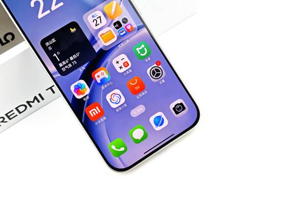 同时,Turbo 5延续了REDMI一贯的窄边框设计,从视觉观感来看,屏幕四周的边框控制相当出色,尤其是左右边框的收窄让整机正面呈现出一种近乎"全面屏"的沉浸感。配合旗舰级的大R角设计,屏幕与边框的过渡自然流畅,没有那种廉价机型常见的"割手感"。