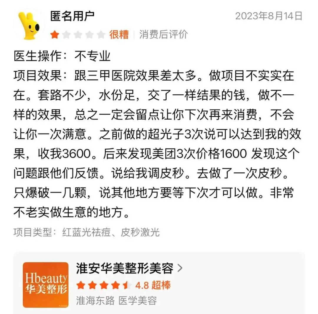 更愤懑的是,淮安华美收钱前热情、收钱后冷漠,呈现一副店大欺客姿态,被痛斥为“见过最垃圾的整容医院”,再度暴露其医疗质量与服务体系双重失控。