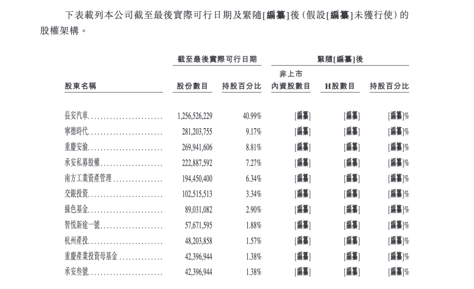 招股说明书披露,阿维塔现在的控股股东为长安汽车、中国长安汽车集团;上市后的控股股东为中国长安汽车集团、辰致汽车、中汇富通、长安汽车及常安创新五大股东。