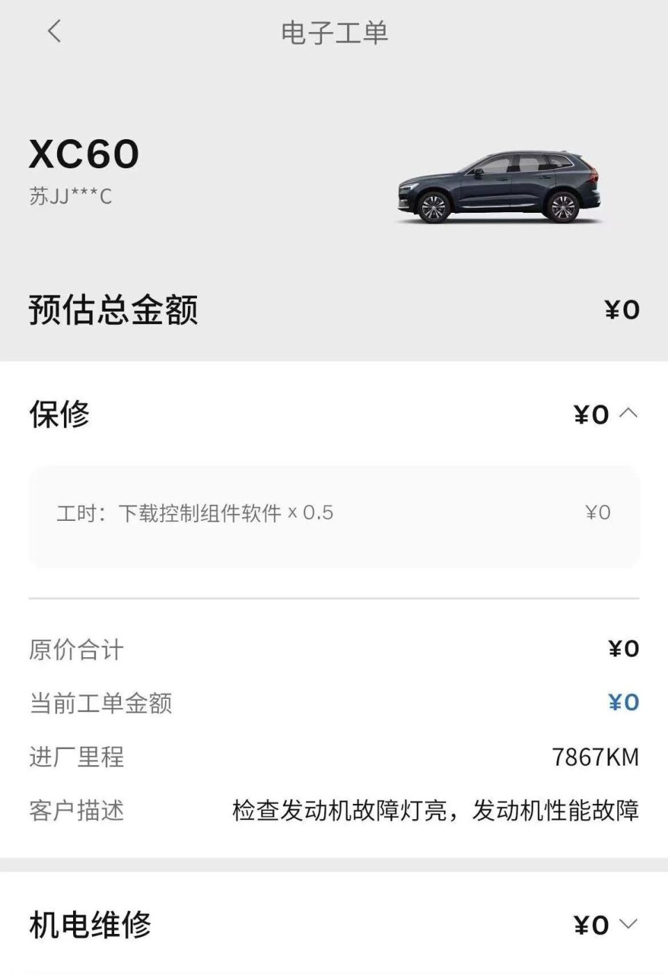 朱先生手机App上显示车辆将进行免费维修的电子工单。车主供图