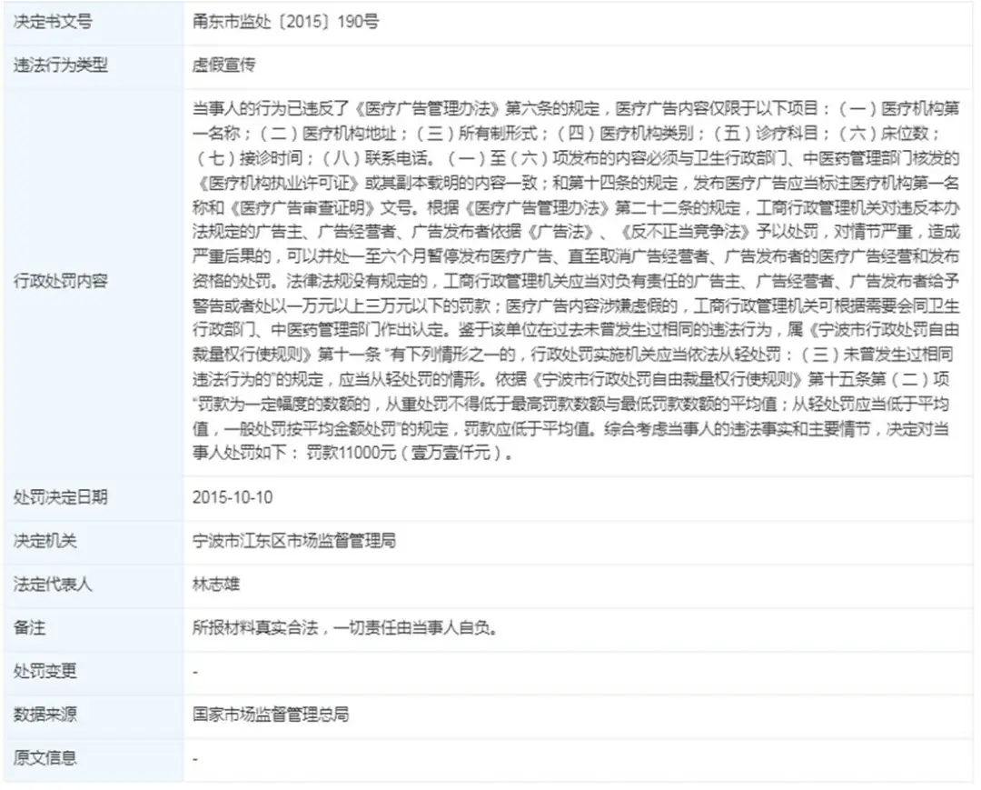 在这些处罚中,虚假宣传的问题尤为突出。就拿前面提到的广告违法行为来说,这可不是个例。早在2015年10月10日,宁波薇琳医美就因为发布的医疗广告与审查通过的内容不一致,被宁波市江东区市场监督管理局处于警告和罚款11000元。