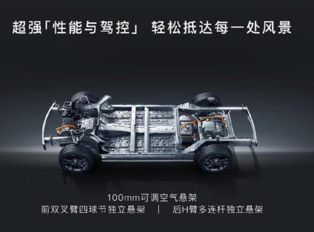 悬挂技术方面,岚图FREE318搭载了前双叉臂四球节独立悬架+后H臂独立悬架,并且搭载了智能化动态随速调节空悬,其高度可调范围达100mm。