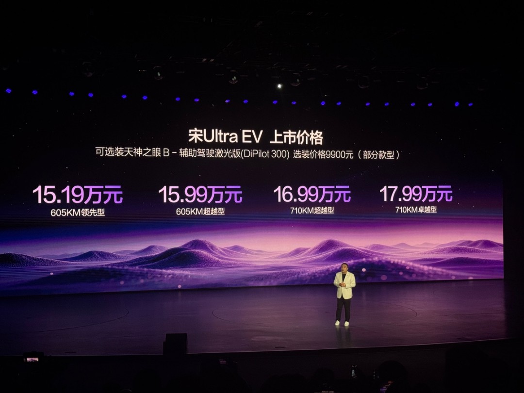 【TechWeb】3月26日消息,比亚迪王朝网旗下宋Ultra EV正式上市,共推出4款配置车型,售价区间为15.19万至17.99万元。新车全系搭载第二代刀片电池及闪充技术,CLTC工况下最高续航里程达710公里,并配备天神之眼B-辅助驾驶激光版、云辇-C智能阻尼车身控制系统等配置,胜任多元化出行需求。
