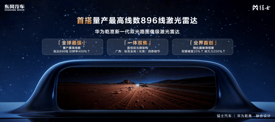 智能体验方面,猛士M817 Ultimate首搭华为乾崑896线双光路图像级激光雷达,配合智驾感知系统,将路面感知精度提升至95%以上,可稳定探测最远120米、14厘米高障碍物,实现“无经验也能敢越野,有智能更能享越野”。同时,新车配备华为乾崑智驾® NCA越野版,实现从城市通勤的街头巷尾,到山野秘境的崎岖小路,领航辅助全程不中断,带来更安心的越野体验。