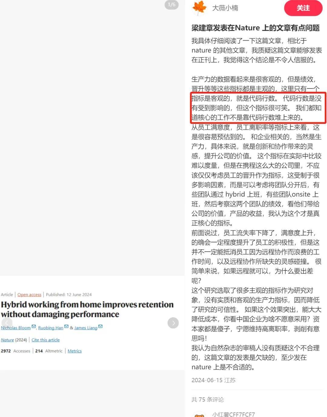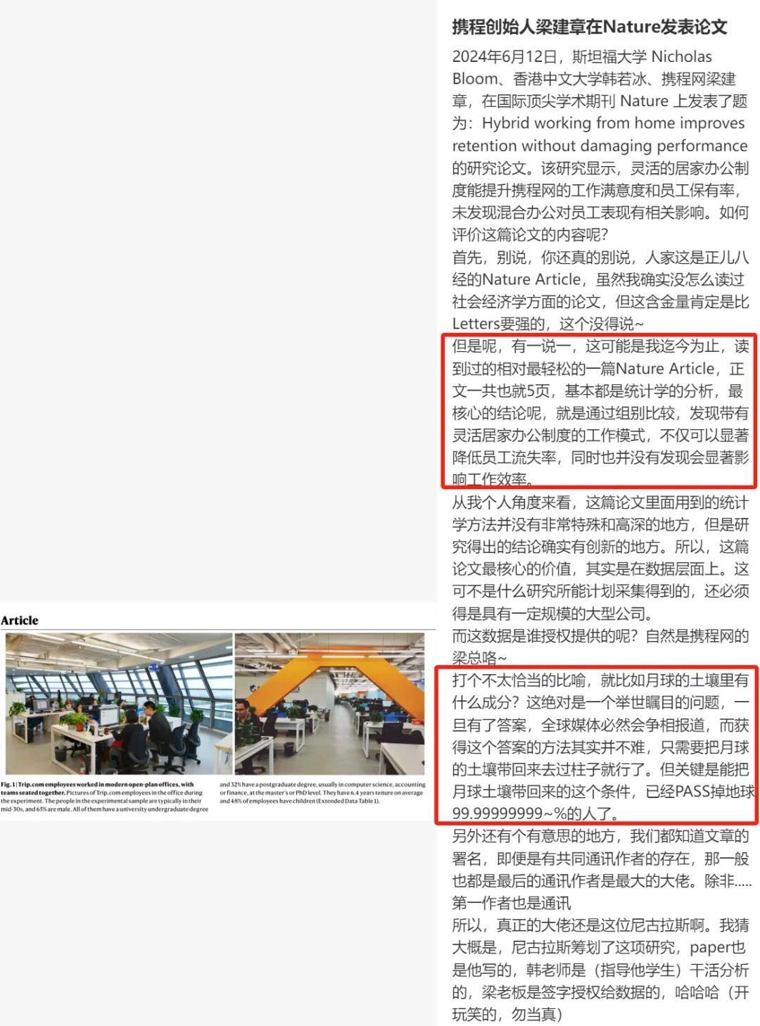 梁建章Nature论文水准遭质疑,携程已有部门疑似取消混合居家办公快讯