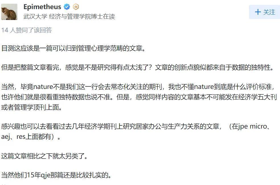 但是也有部分网友表示看完整篇文章,感觉是不是研究的有点太浅了,文章的创新点貌似都来自数据的独特性。